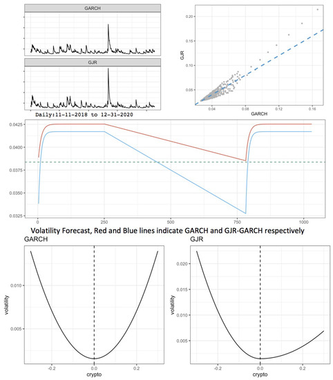 4.1. GJR-GARCH and GARCH Models for Cryptocurrency Volatilities