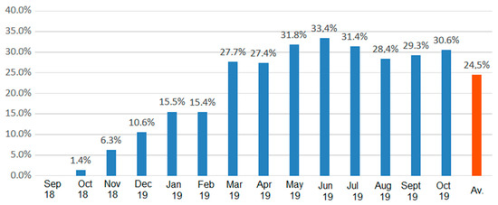 Recirculation ratio for REC-affiliated businesses (retailers) from October 2018 to October 2019.