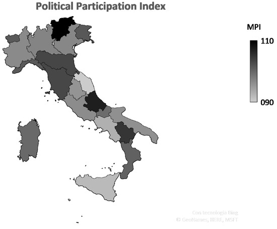 With regard to political participation, the following results have been obtained thanks to the application of the Mazziotta–Pareto Index (Table 2):
