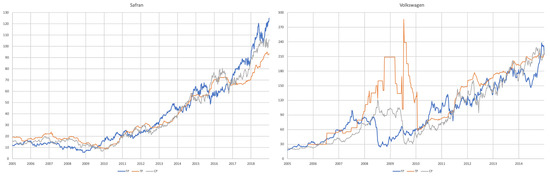 - Similarly, levels of the “FP vs CP” regressions range from 0.0021 (Essilor) to 0.1214 (Volkswagen), suggesting similar levels of accuracy of the two forecasts with target prices working better for some firms and capitalised prices for others.