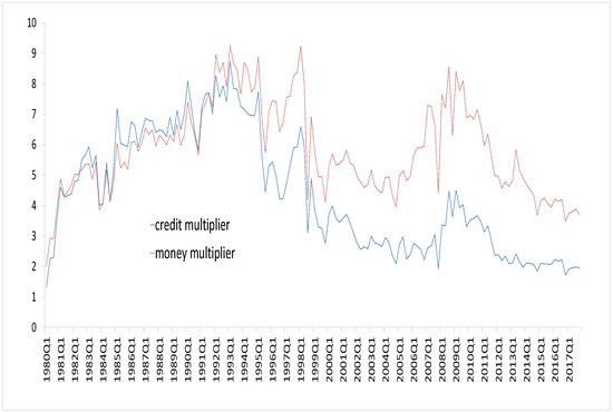 - Tule, K. Moses, and Taiwo O. Ajilore. 2016. On the stability of the money multiplier in Nigeria: Co-integration analyses with regime shifts in banking system liquidity. Cogent Economics & Finance 4: 2–16. [Google Scholar]