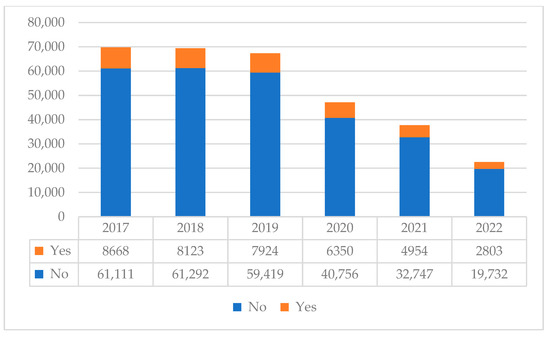As presented in Figure 1, there are 313,879 observations in total across years. Since there are only two quarters in 2022, it shows less numbers of observations. In terms of willingness to work more hours, the largest share of those who would like to work more hours if paid was found in the year 2020 with 13.5 per cent of the sample reporting “Yes”. The lowest share, however, was found in the year 2018 with 11.7 per cent.