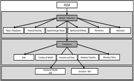 The exogenous manifest variables show the influence on financial literacy in FILSA. For the evaluation, the values on the left were bundled in order to determine individual scores for each attitude criterion (