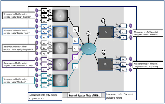 Schuhen and Schürkmann 2014). For the exogenous variables, the impact on the latent variable financial literacy is measured, while the endogenous variables try to explain the latent variable financial literacy. The measurement model of the manifest endogenous variable incorporates two components. The first component is the competence test, and the second component represents the responsibility for financial decisions in a household.