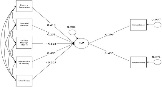 The model quality criteria for the latent variable FLA (Financial Literacy of Adults) for FILSA are in a good range and can, thus, be accepted. The value for