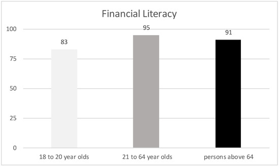 The points achieved on average in the age group as a measure of financial literacy are represented (scaled from 0 to 147); higher values stand for a higher financial literacy.