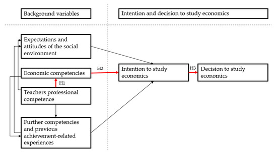 Thus, the present study aims to analyze the interrelations between the professional knowledge that students perceive in their economics teacher, their economic competencies, and their intention and decision to study in an economics study program. The present work thus addresses an important desideratum of previous research in this study area (for an overview of recent studies in this field, see, e.g., Compen et al. 2019; Wuttke et al. 2016; Schlax et al. 2020; Aprea et al. 2016; Happ and Zlatkin-Troitschanskaia 2021; Kühling-Thees et al. 2020).