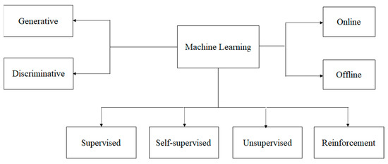 While review papers on this theme have frequently appeared in the literature, new models have been introduced over the past two years. Figure 1 shows the various paradigms of ML, some of which have been advanced in the literature recently; these paradigms were developed in response to different problems in ML and were applied in the review papers we highlight later. Supervised learning techniques (Bishop 2006) acquire knowledge representations from labeled training data, i.e., they require the availability of the ground truth at training time. Most deep neural network techniques that are trained using back propagation algorithms, support vector machines, etc. (Bishop 2006), fall in this category. In many areas, such as finance, acquiring large volumes of training data with ground truths is prohibitively expensive or even impossible, since the ground truth labels can only be provided by trained experts who may not always be available at training time. To address this issue, the machine learning community has, in recent times, focused on low-shot (Wang et al. 2018) or unsupervised learning techniques. Low-shot techniques attempt to learn knowledge representations from a small amount of labeled training data. Unsupervised learning techniques (e.g., clustering algorithms) (Bishop 2006) attempt to exploit copious amounts of available unlabeled data to acquire the ability to uncover patterns in data sets. The challenge for unsupervised techniques is to achieve the same level of performance as provided by supervised ones. Recently, there has been excitement in the machine learning community regarding self-supervised learning (Misra and Maaten 2020), in which the labels for the data are derived from the data itself. Thus, self-supervised learning techniques promise to achieve the performance of supervised ones while retaining the advantages of unsupervised ones. Reinforcement learning techniques (Sutton and Barto 2018) learn behaviors based on rewards or punishments that they receive from the environment. Discriminative learning techniques (Bishop 2006) attempt to learn the decision boundaries that separate different classes in a dataset, whereas generative techniques (Goodfellow et al. 2020) learn the probability distribution underlying a data set. In many applications, learning is conducted offline, and in domains where the environment changes dynamically, online learning algorithms (Bishop 2006) are used.