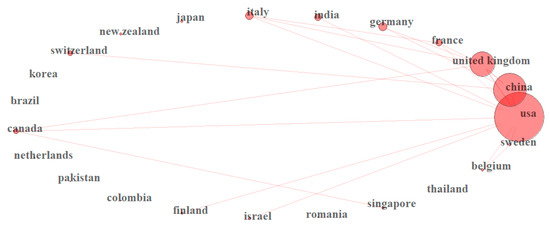 Figure 3 illustrates the collaboration linkages for the 23 countries identified in the WoS search. The United States, China, and the U.K dominate the concentration of collaboration, but the density of such a collaboration is just starting with a density of 0.079 and a transitivity3 of 0.31. Authors’ collaboration networks were developed (not shown) but resulted in similar statistics, with a smaller density (0.012) but a transitivity of 0.89, making it very probable that scholars in other countries, not directly shown in the network, are connected to scholars in the U.S. The same implication applies to China and other countries.