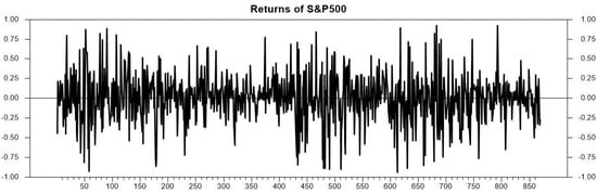 Returns are measured as the difference between the natural logarithm of closing prices.