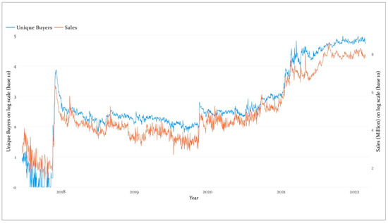 | 1 | CryptoSlam is one of the leading NFT aggregators, collecting data from Ethereum, WAX, and FLOW blockchains. The official website is https://cryptoslam.io/ (accessed on 28 Febuary 2022). |