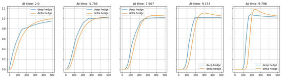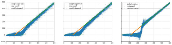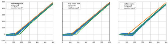 Finally, we compare the terminal wealth between deep hedging and delta hedging in Figure 1, Figure 2, Figure 3, Figure 4, Figure 5 and Figure 6, from which we can see that the violation of admissibility by delta hedging is substantial.