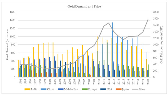 - Dan Popescu. 2014. India’s Role in the Gold Market. Available online: https://goldbroker.com/news/india-major-player-gold-market-519 (accessed on 1 March 2022).