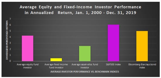 - Anspatch, Dana. 2021. Why Average Investors Earn Below Average Market Returns. The Balance Blog. Available online: https://www.thebalance.com/why-average-investors-earn-below-average-market-returns-2388519 (accessed on 30 April 2022).