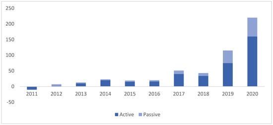 Annual European Sustainable Fund Flows (EUR billion). (Bioy et al. 2020).