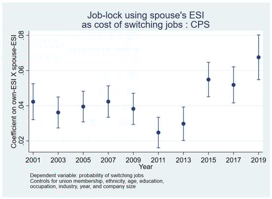 Period-Specific DD Estimates of Job Lock from the CPS.