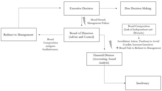 Board Characteristics and Insolvency: Figure summarizes the theoretical considerations to the question of whether board independence and board diversity influence a board’s ability to prevent management failure and thereby mitigate insolvency risk.