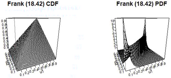 We begin this section by reviewing some basic definitions and concepts related to copula. The utility of Sklar’s theorem is that the modeling of the marginal distributions can be conveniently and efficiently separated from the dependence modeling in terms of the copula. Interestingly, the major task that lies in practical applications is how to identify this copula. For the bivariate case, a rich collection of copula families is available and well-investigated (see, for details, Joe 1997; Nelsen 2006). Sklar’s theorem establishes the link between multivariate distribution functions and their univariate margins. We state this theorem at first. Let F be the p-dimensional distribution function of the random vector with marginals . Then, there exists a copula C such that for all