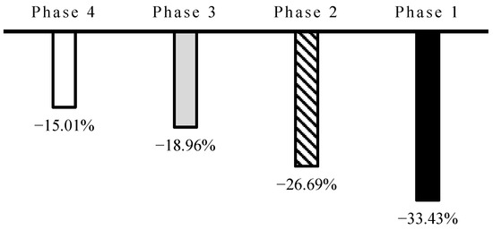 Figure 6 provides visual evidence of the maximum drawdowns by each portfolio category for each sub-sample period. A point of interest from Figure 6 is that the drawdown for the Phase 4 and Phase 3 portfolios is more significant during Period C relative to Period A. In contrast, it is the opposite for the Phase 2 and Phase 1 fund portfolios. These two portfolios experienced more significant drawdowns during Period A than during Period C. One could extrapolate from Table 4 and Figure 6 that the first intervention did not do enough to stabilize financial markets, whereas the second intervention helped alleviate pressures in the financial markets.