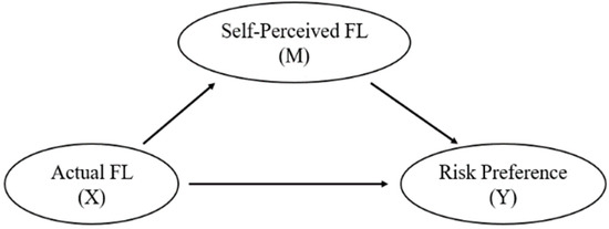 Figure 1 illustrates the triangular mechanism (i.e., the mediation model) through which Actual FL (X) influences Risk Preference (Y) with the mediator Self-Perceived FL (M) (Hayes 2013). We propose a two-equation model (1) and (2) in which Self-Perceived FL (M) is now an endogenous variable predicted by Actual FL (X). The model accounts for the direct effect (), the mediation effect (), and the total effect () of X on Y.