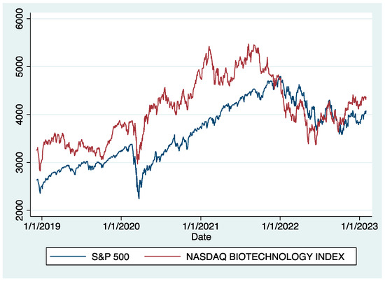 Over the past decade, biotech companies have made major R&D investments, especially through fundraising, without benefiting from many gains for years. In recent years, due to changes in the corporate structure of companies in the sector, many companies are start-ups and have changed their approach to product development. The pandemic, by changing health and socio-economic systems, has harmed many traditional companies, but not on the pharmaceutical industries. In fact, during the first quarter of 2020, the biotech sector recorded a marked rise in prices, also outperforming the pharmaceutical sector, and was the exception to the sudden decline in the financial market, which has affected many economic sectors since the beginning of the COVID-19 (Senior 2020). Despite a brief downturn at the start of 2020, biotech companies’ average growth recovered quite well. Figure 1 shows that after an initial price shock in March 2020, investments in biotech firms increased. After a decline of 8.8% at the announcement of the pandemic, the Nasdaq Biotechnology Index gained 42.39% since the onset of COVID-19, reaching its maximum value in August 2021 and showing values above the S&P 500 for almost the entire period.
