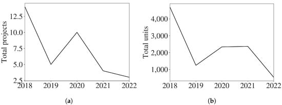 Historical condo project cancellations in the GTA land and housing market by Urbanation (2023): (a) total number of projects and (b) total number of units.