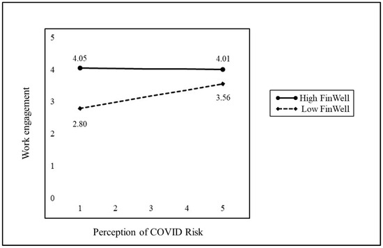 When perceptions of financial wellness support are high, COVID-19 risk will be related to lower work engagement. Conversely, when financial wellness is low, COVID-19 risk will be related to higher work engagement.