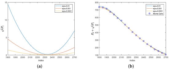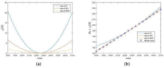 Figure 2a shows how the -term for a floating strike lookback put changes with respect to a variation in values. In a similar pattern, for a fixed -value, when s increases, decreases first and then increases after it hits its trough. Similar to the case of down-and-out put options, when becomes smaller (equivalently, the mean-reverting speed becomes larger), approaches to zero. Figure 2b shows how the value of for a floating strike put varies with respect to the change in values. When the value of changes from 0.01 to 0.001, the value of varies. But when the value of changes from 0.001 to 0.0001, the value of does not vary much. The values of match well with the result of Monte-Carlo simulation when or . Furthermore, in all cases, the value of increases as s increases.