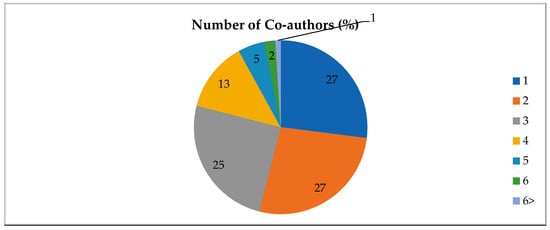 Figure 2 illustrates the distribution of authorship in the analysed articles. The most prevalent configuration is single and two collaborating authors, representing 27% of articles. Next are three-authored articles (25%), followed by articles co-authored by four individuals (13%). Nearly 80% of our sample comprises articles with three authors or fewer. Table 6 provides the geographic dispersion of the publications. Continent-wise, North America (36) and Europe (63) dominate.