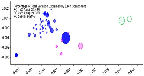 With regard to PCA, each principal component is a linear combination of the original features (words) and captures the most significant patterns or variations in the data. Words positioned closer along the x-axis or y-axis tend to have higher positive or negative loadings for the corresponding principal component. The relative positions of words along the x-axis and y-axis indicate their relationships based on the identified patterns in the textual data. The percentage values associated with each principal component indicate the proportion of variance explained by that component. For example, if the first principal component explains 35% of the variance approximately, it means that 35% of the total variability in the word in Scopus is captured by this component, as observed in Figure 6. We have removed the term labels to prevent them from overlapping with each other for the three main clusters.