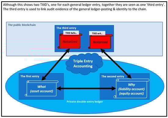The double-entry method can be extended to a form of Triple Entry Accounting by adding a signed third entry to a public ledger. The third entry can be defined as publishing a notarized index of the double-entry accounting entry to the public blockchain. We will return to what is meant by notarized in the next Section 2.1.