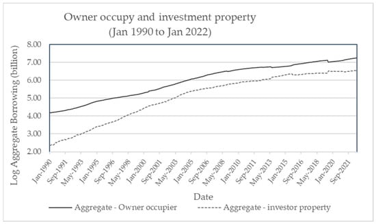 In Australia, the mortgage rate refers to the 3-year bank lending rate for house buyers. As can be seen from the graph (Figure 2), mortgage rates have been on a downward trend from its highest at 17 percent in 1990 to below 6 percent from 2013 until mid-2022. The lowest mortgage rate was 2.07 percent per annum offered by Bankwest in November 2020. In 2016, the cash rate in Australia was reduced to 1.5 percent and maintained at historical low between 0.10 percent to 1.5 percent from August 2016 until July 2022. This is beneficial to mortgage borrowers as it keeps the borrowing cost low. However, this more conducive borrowing environment has resulted in a steady growth of the aggregate borrowing from AUD 64.9 billion to 1413.6 billion for owner occupied home and an increase from 10.5 billion to 696.9 billion for investor housing from 1990 to 2022, respectively (see Figure 3).