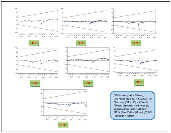 Plots of CUSUM for Parameter Stability between Brent Crude Oil Price and Stock. Indices of G7 countries. Source: Researchers’ own representations.