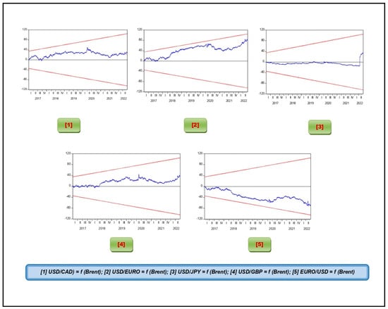 Plots of CUSUM for Parameter Stability between Brent Crude Oil Price and Exchange Rates of the domestic currencies of G7 countries expressed in terms of USD. Source: Researchers’ own representations.
