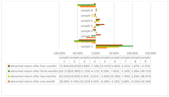 - After the first month, investors of sample 1, sample 4, and sample 7 could receive 30.59%, 3.34%, and 2.69% abnormal earning separately.