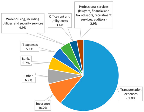 First, this is an analysis of internal reports and working documents of the company. To obtain the data necessary for analysis, the company’s employees, according to the algorithm we developed, selected data by category of transactions and payments. Based on the samples obtained, we made calculations of the cost structure by cost type and other calculations necessary for our study. Sampling and calculations were performed separately for each of the following types of costs: transportation; insurance; banks; warehousing, including utilities and security services; IT expenses; office rent and utility costs; professional services (lawyers, financial and tax advisors, recruitment services, auditors); natural resource tax and utilization; fuel and car fleet maintenance; representation and advertising costs; customs duties; subscription fees; office supplies; customs clearance; communication costs; commission fees; personnel training costs; labour costs; labour taxes; mandatory social security contributions; and other types of taxes. During sampling, all types of costs were divided into costs paid in the company’s country of residence and outside it.