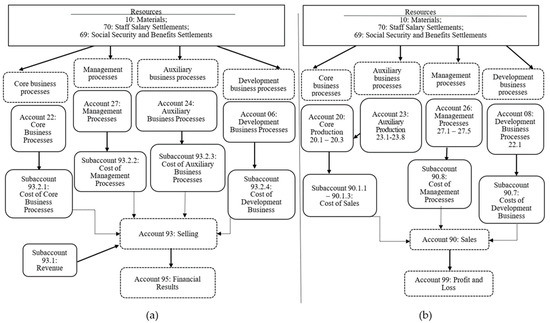 Model of accounting support in the process-based management accounting system: (a) Version 1; (b) Version 2. Source: authors’ development.