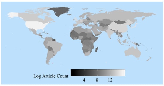 Figure 3 provides an overview of the final article counts for each country in log scale. The lighter colors represent the countries with a relative abundance of articles in the dataset. Only countries in Africa and the Middle East have relatively few non-sports articles of the types used in our textual analysis. Although these data begin in 1996, we are able to expand the number of countries in our analysis to 62 based on further cleaning of the data.