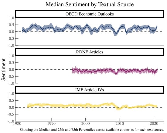Figure 4 plots the range of sentiment scores from each source text generated with a word dictionary developed by
