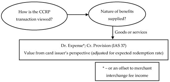 The literature indicated that, in practice, some CCRPs applying IAS 37 account for the CCRP transaction recognising award credits granted as an offset to merchant interchange fee instead of an expense (Brink 2017b). Figure 1 illustrates the accounting treatment of a CCRP transaction which is viewed as a marketing tool where the nature of the benefits is goods or services (to be incorporated into the CCRP theoretical model).