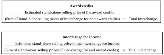After estimating the stand-alone selling price, the relative stand-alone selling price needs to be determined for allocation purposes. The allocation of the transaction price based on the relative stand-alone selling prices can be calculated as illustrated in Figure 8 for award credits and the interchange fee income, respectively.