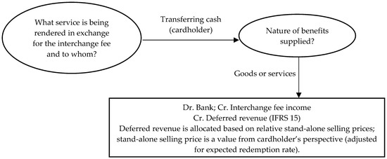 When the CCRP is viewed as an integral part of the credit card transaction, the CCRP transaction forms part of a bigger revenue transaction (Brink 2022) and IFRS 15 is possibly applicable. The scope of IFRS 15 states that an entity shall apply the Standard to a contract only if the counterparty to the contract is a customer. If the merchant is identified as the card issuer’s customer for the interchange service, the CCRP transaction falls outside the scope of IFRS 15 (Ernst and Young 2014). If the cardholder is the card issuer’s customer for the interchange service, the CCRP transaction falls within the scope of IFRS 15 (Ernst and Young 2014). The CCRP transaction will also fall outside the scope of IFRS 15 if the relevant revenue stream in the CCRP transaction is identified as the interest income which is accounted for in terms of IFRS 9.