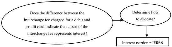 In a credit card arrangement, the card issuer receives an interchange fee with each cardholder purchase transaction. Specifically, a credit card arrangement functions differently than a debit card arrangement. The interchange fee for credit cards is normally higher than those of debit cards owing to the functioning of a credit card arrangement. Brink (2017c) indicated that the interchange fee might include interest, since there is a difference between the interchange fee charged when using a debit card versus using a credit card. If this is the case, then the interest portion included in the interchange fee should be accounted for in terms of IFRS 9. Figure 11 illustrates accounting for the interest if a portion of the interchange fee represents interest (to be incorporated into the CCRP theoretical model).