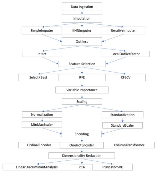 As a summary, Figure 4 shows the entire end-to-end process flow for the data pre-processing implemented in this paper, specifically using the Python Scikit’s packages. The process depicted below are all the necessary steps taken prior to modelling using classic logistic regression and machine learning methods.