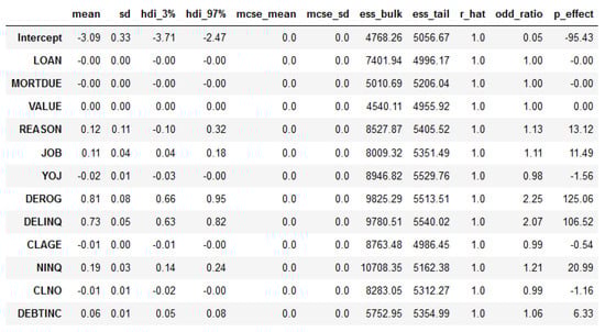 Finally, the effect of the individual variable on the posterior probability could be obtained. This is important as the effect of the individual predictor on the target variable (BAD) was clearly shown.