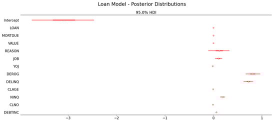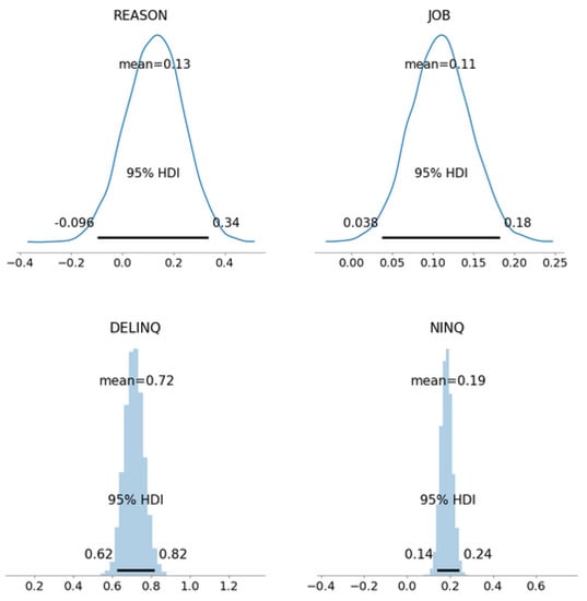 These graphs provide clear indicators as to the effect of the variables in determining the probabilities of loan default. The interpretability is indeed one great advantage for practitioners using Bayesian methods.