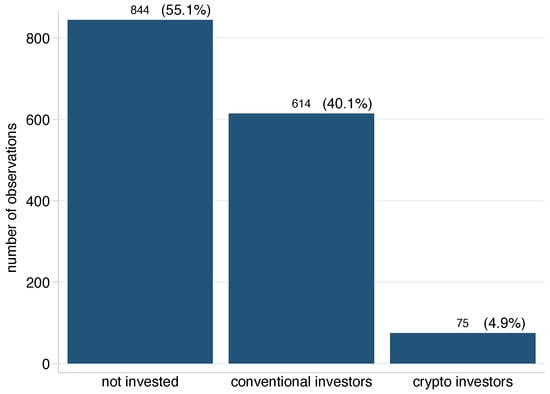 Number of cases of non-invested individuals, individuals invested in conventional assets, in cryptocurrencies. Source: Own data.