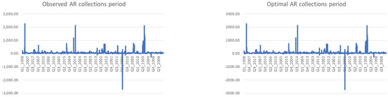 Visual presentation of potential structural breaks in case of observed and optimal accounts receivable collections period.