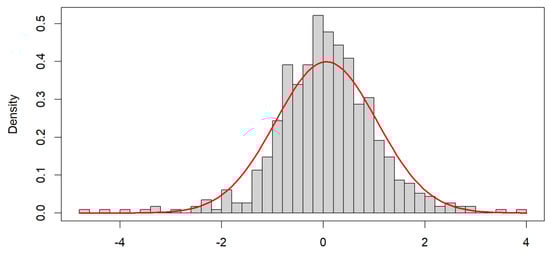 An elliptical distribution, whether symmetrical or skew-symmetrical, refers to a d-dimensional random vector, as defined in Definition 1. In financial time series analysis, it may be necessary to stabilize the data, which can be achieved by taking the log-difference of the time series and considering the resulting residuals as approximately following a standard normal distribution or by using the Box–Jenkins methodology, see (). Distributions commonly found in finance possess distinctive features or characteristics that require appropriate modeling methods.