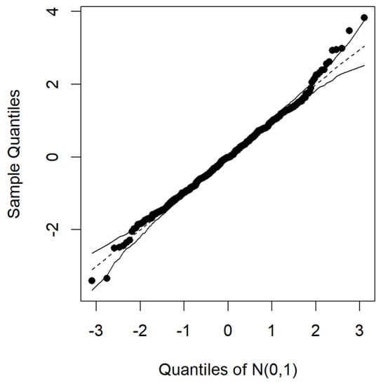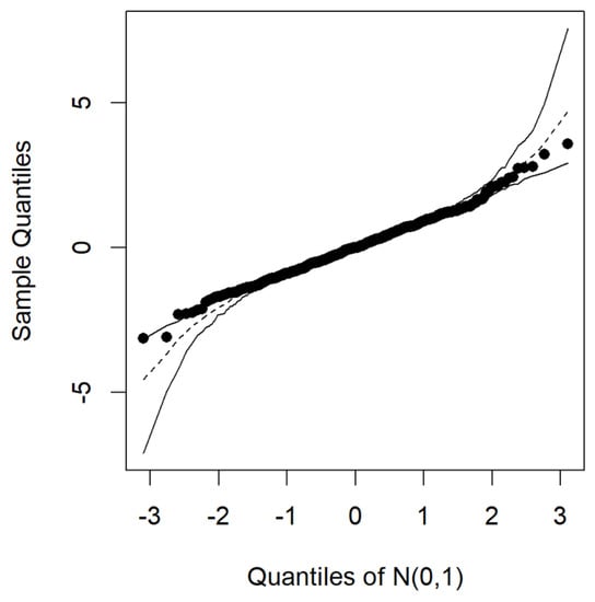 An important issue for the regression model is the choice of the distribution. It may be that the choice of the distribution of is usually restricted to standard distributions, such as normal or Student’s t-distributions, see (). Elliptical regression is convenient due to the closed form of the elliptical distribution.
